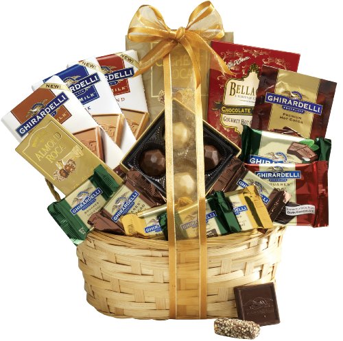 - Delight your recipient with a huge assortment of gourmet chocolates including chocolate Ghirardelli Luxe bars in assorted varieties, Cashew and Almond Roca, Bellagio hot chocolate mix, Ghirardelli chocolate truffle squares and more