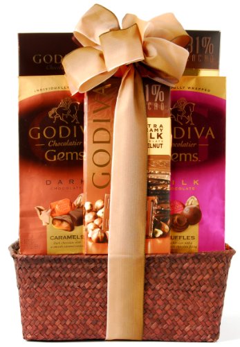 - Decadent sampler gift basket featuring Godiva chocolate for holiday giving