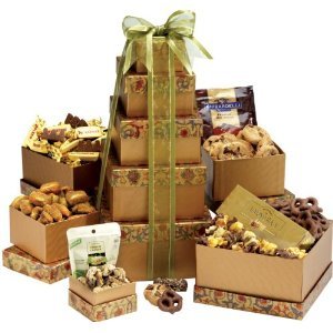 - The Gift Tower Deluxe is a five-star five-box tower is filled with an array of delectable gourmet snacks and sweets