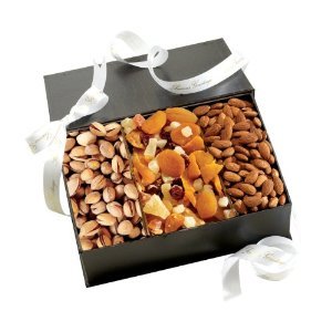 - This gift includes mounds of roasted cashew nuts and almond nuts alongside a luscious dried fruit medley